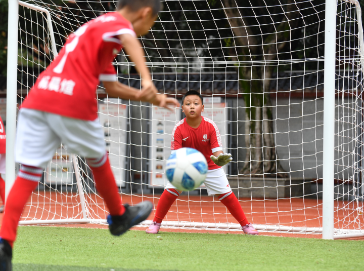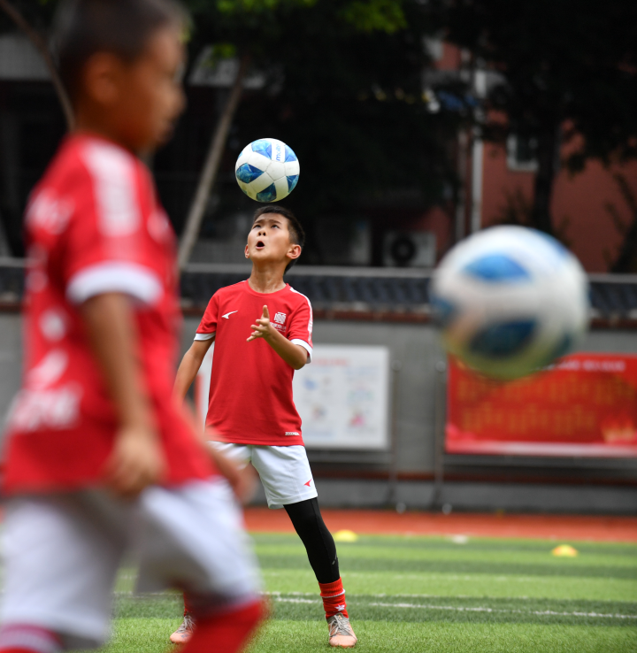 当渝超的激情在城市中澎湃激荡时,九龙坡区的校园足球氛围同样热烈且醇厚。在杨家坪小学的绿茵场上,阳光倾泄而下,身着红色队服的小球员们,成为这片场地最灵动的风景。
