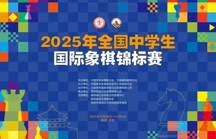 10月31日至11月2日,2025年全国中学生国际象棋锦标赛在历史文化名城举行。本次赛事由中国学生体育联合会,中国国际象棋协会主办。