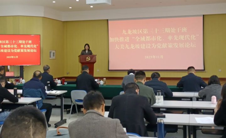 九龙融媒讯(记者 范坤民)为加快建设“全域都市化、率先现代化”大美九龙坡,凝聚广泛共识、汇聚智慧力量,推动领导干部进一步深入基层、深化研究,更好地勇挑重担、走在前列,11月13日,区委党校第三十三期处级领导干部培训班举办“加快推进‘全域都市化、率先现代化’大美九龙坡建设为党献策发展论坛”。