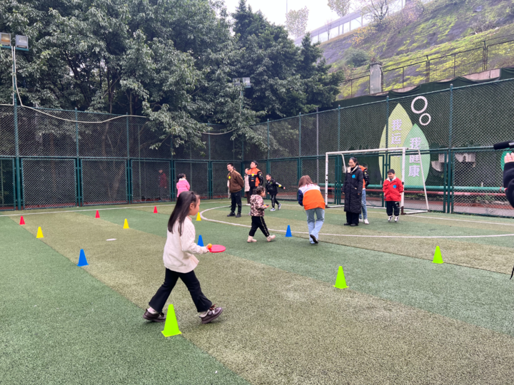 当天一早,广场上早已热闹起来。参与家庭陆续签到领取彩色分组贴纸,在轻快的音乐中自由拍照留念,提前感受活动氛围。在“稳准达・乒乓接力赛”中,孩子们化身“小接单员”,手持球拍运球穿越S形弯道,与家长击掌后,家长以“骑手”身份完成直道配送,乒乓球不掉落、快速送达成为核心目标,现场不时响起“慢点稳点”“加油快跑”的鼓励声;在“订单寻宝”环节里,家长远程指挥孩子在“食材宝藏区”寻找订单所需“食材”,考验着亲子间的沟通效率,有的家庭配合默契快速完成,有的则在欢声笑语中慢慢摸索;最暖心的当数“好评投递”环节,孩子们站在3米外,将代表“五星好评”的泡沫飞行器投向家长手中的“外卖箱”,每一次成功投递都伴随着欢呼,家长们则小心翼翼移动箱子,接住孩子满满的爱意。
