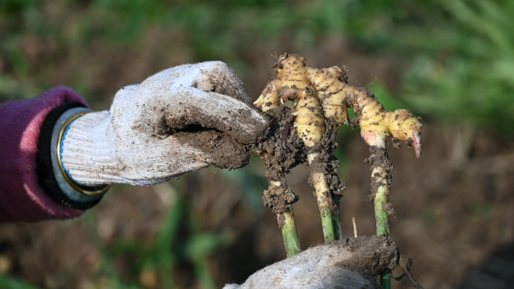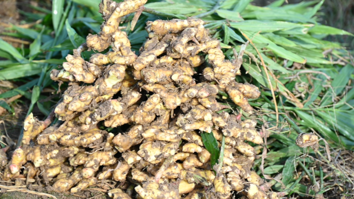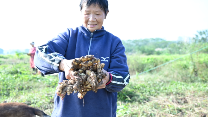 这片小黄姜是在合心村党支部书记刘春梅的牵头组织下,村民们用汗水浇灌出的“黄金作物”。据介绍,合心村独特的水土与气候,赋予了小黄姜与众不同的优良品质——切开后芳香扑鼻,辛而不辣、回味甘醇,既是厨房调味的点睛之笔,也是养身食疗的优质之选;其肉质紧实、纤维细腻、汁水丰盈,无论切片、剁末还是熬汤,都能释放出醇厚风味。为了保证天然原生态,村民们坚持生态种植模式,全程人工除草,施用农家肥,让每一块小黄姜都成为安心健康的美味。