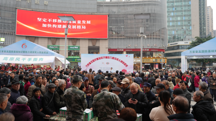九龙融媒讯(记者 范坤民)11月21日,由九龙坡区万家崇军服务中心主办的万家普及国防基础知识暨助力退役军人创业就业展销会在杨家坡步行街举行。本次活动以“崇军惠民促进消费市场・带动经济发展”为主题,既是响应国家扩大服务消费号召的具体实践,更是九龙坡区扶持退役军人创业就业、弘扬爱国拥军精神的生动展现。