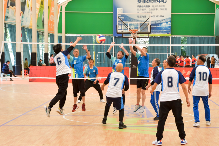 赛场上,老年运动员们个个身手矫健、配合默契,精准的传球、巧妙的拦网、有力的扣杀,每一个动作都展现出扎实的功底与昂扬的斗志。尽管年岁已高,但他们发球、起跳、救球的身影丝毫不逊年轻人,攻防转换间尽显团队协作的智慧。场边观众热情高涨,加油声、呐喊声、欢呼声此起彼伏,为赛场增添了浓厚的竞技氛围。