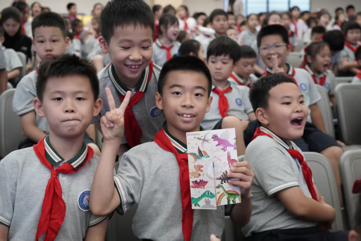 每场活动中,孩子们最喜欢的是有奖问答环节。专家们精心设计了“重庆本土恐龙有哪些”“最大的三叶虫有多大”“我们为什么要保护古生物化石”等贴合讲座内容的问题,同学们纷纷举手抢答,有的甚至主动分享自己课前查阅的古生物小知识。答对的同学收获了定制科普手册、恐龙模型、石燕化石等小奖品,脸上洋溢着自豪的笑容;即使答错,专家也会耐心讲解正确答案,让大家在轻松的氛围中巩固知识。