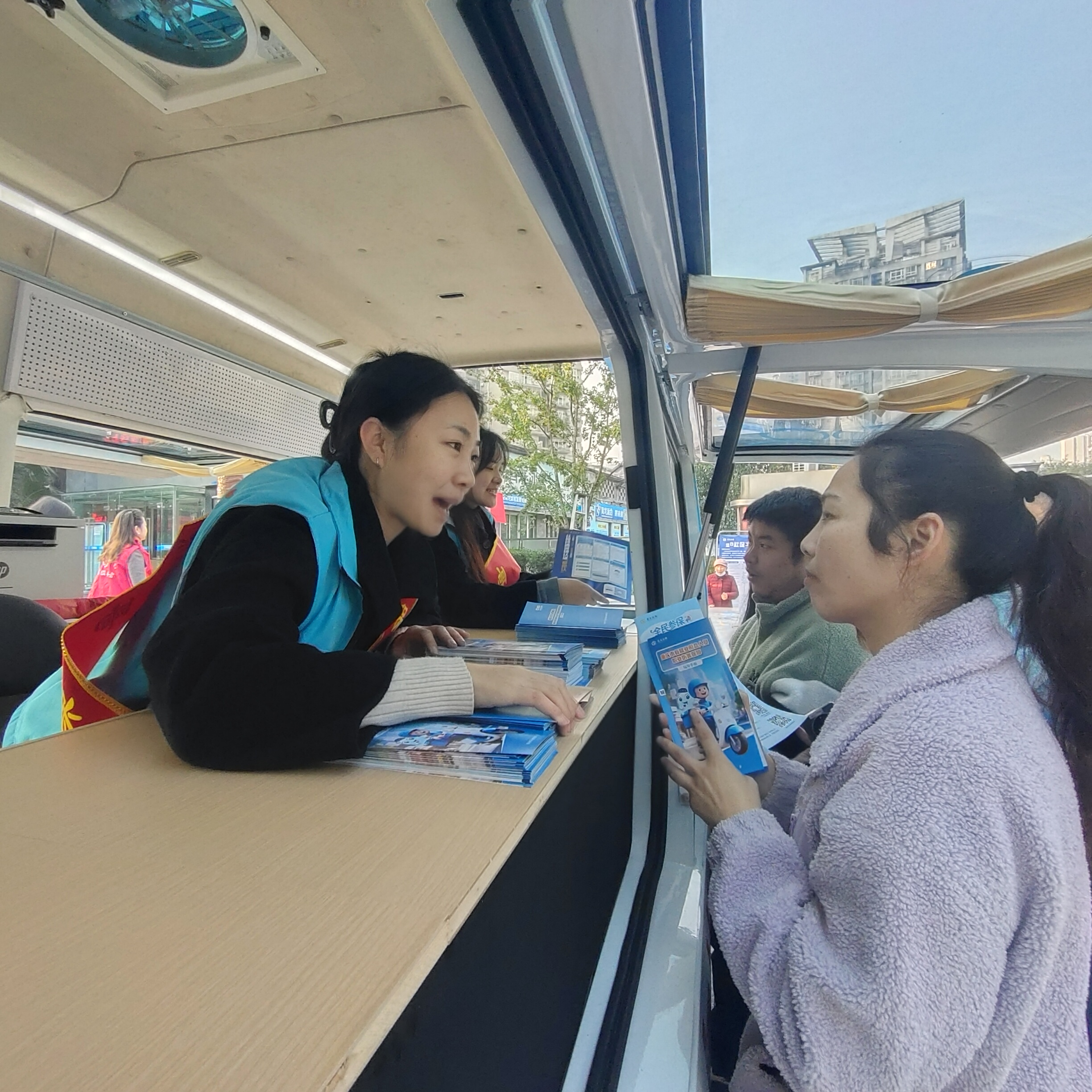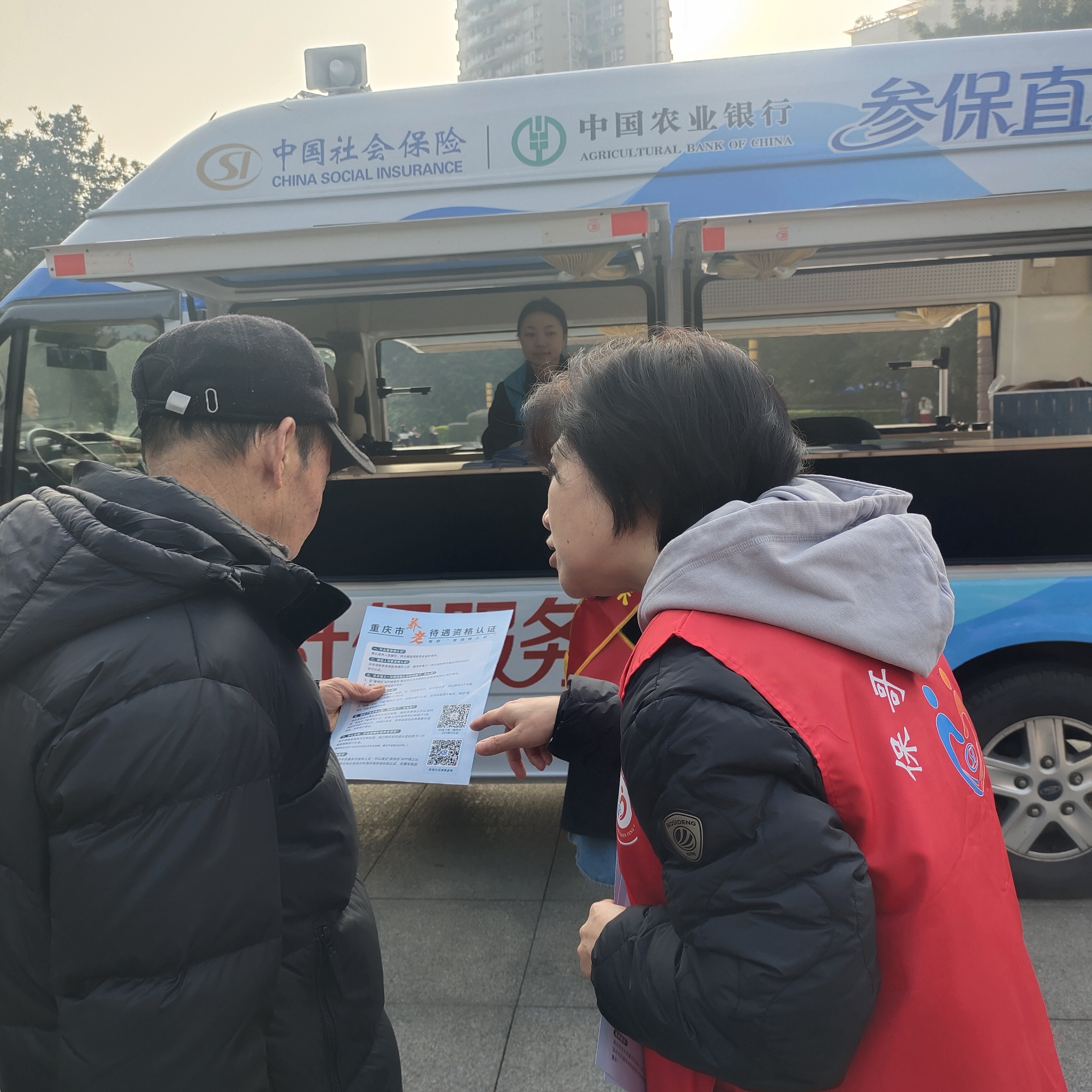 本报讯(记者邬姜 摄影报道)11月28日,市审计局、市人力社保局联合九龙坡区人力社保局、区税务局、杨家坪街道办事处,将一辆标识醒目、功能齐全的“参保直通车”开进九龙广场,把涵盖社保查询、参保登记、社保卡启用等20项高频社保服务“打包”送到群众家门口,为周边居民带来政策咨询与业务办理“一站式”便民体验。这也是九龙坡区深入推进“社保服务进万家”活动的生动实践。