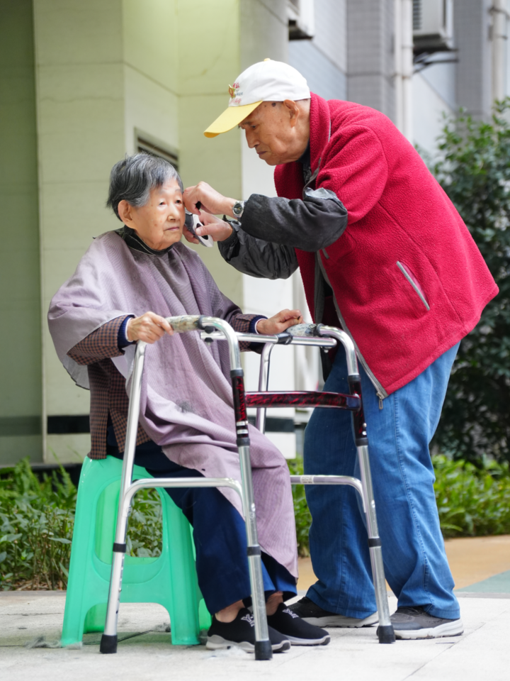 “要不是顾老师,我们家老张理发可难了。”龚华珍感慨道。张太成今年72岁,行动不便,出门理发需要有人搀扶和陪同,既费钱又费事。十几年前,顾大彬在社区里“转圈”吆喝着免费理发时,夫妻俩半是好奇半是感激地接受了服务,这一剪就是十几个春秋。“最开始是在外面剪,后来顾老师看老张行动不方便,就主动说‘我进来给你剪’,再也不用我们折腾了。”龚华珍说,顾大彬不用特意询问,却总能精准记得张太成喜欢推成光头的偏好,每次上门的时间也总恰到好处,要么是上午八九点钟,要么是下午一两点,从不影响他们的作息。