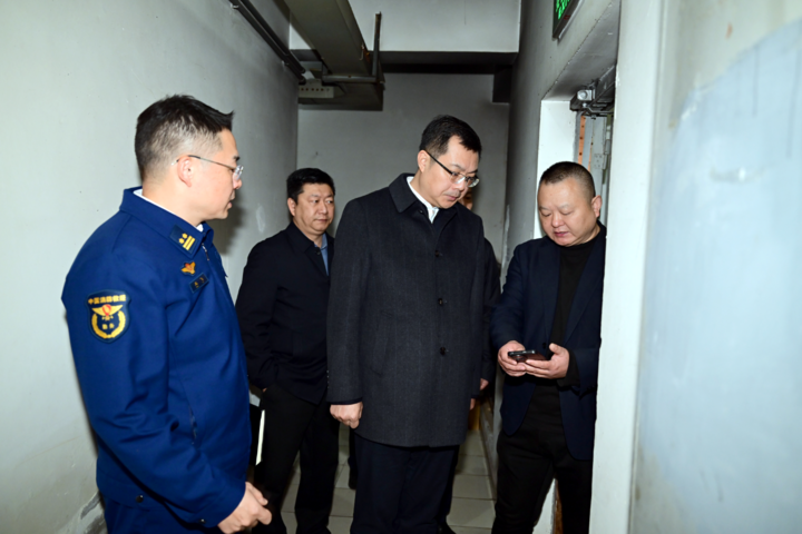 在聚金万佳苑小区,覃昌德进楼栋仔细检查消防设施配备、日常运行以及疏散通道通行情况,对部分消防器材缺失等隐患问题,现场研究整改措施。