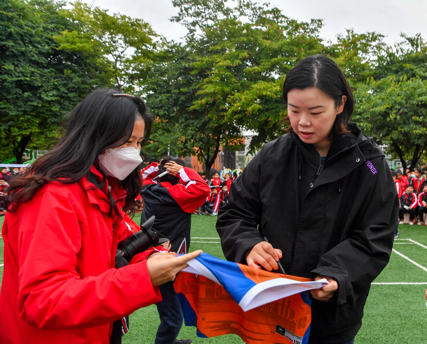 12月3日上午的九龙坡区火炬小学,掌声与欢笑声为冬日增添了不少温暖——奥运羽毛球冠军李雪芮的到来,让“火炬点亮梦想”的办学理念有了最鲜活的注脚,她与火炬小学党总支书记胡浩以“火炬点亮梦想,冠军辉映童年”为主题,为孩子们上了一堂关于梦想、拼搏与成长的大思政课。