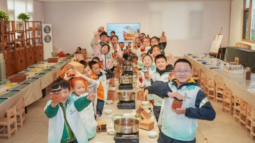 活动从一场“非遗小讲堂”开始。面对晶莹馥郁的桂花酱,孩子们的好奇心被瞬间点燃。“古人是怎么想到用糖来留住花香的?”“为什么要用黄冰糖?”在研学导师的讲解中,他们逐渐领悟到这小小一罐酱料背后所蕴藏的保存时令、转化风味的古老智慧。