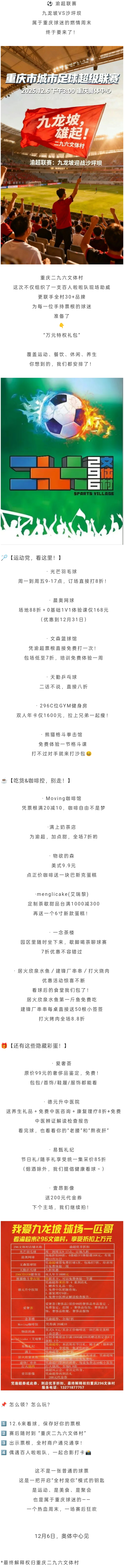 九龙坡主场首秀!凭一张票根,解锁重庆296文体村“万元球迷大礼包”!