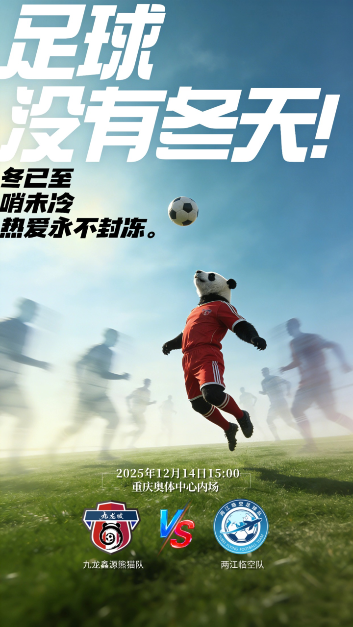 12月14日15:00,重庆奥体中心,让我们共同聚焦这场燃情赛事,见证两支球队全力以赴的竞技风采,为城市足球的热血与热爱喝彩!