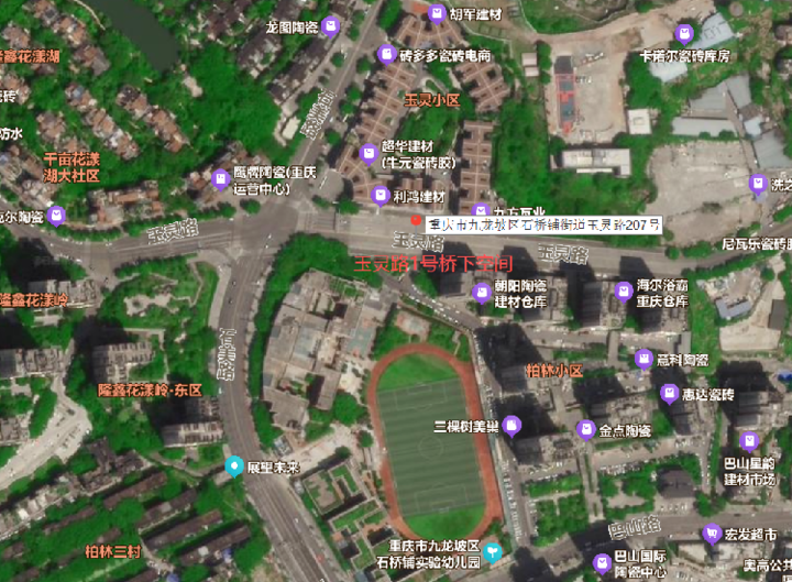 项目介绍:本项目位于玉灵路一号桥桥下,由5块独立场地组成,现状已建有乒乓球台和羽毛球场地,部分空间处于闲置状态。周边覆盖玉灵小区、柏林小区等成熟居民区、重庆市第六十五中学以及建材市场,具有稳定的社区人流基础。桥下空间遮蔽性好,适合全天候开展体育活动,是优化城市闲置空间、服务民生的典型场景。