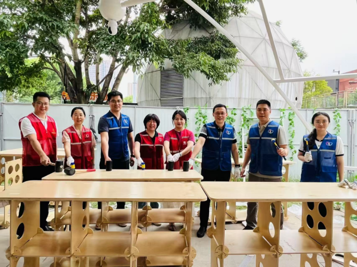▲重庆市财政局社会保障处党支部与九龙街道机关党支部共同开展“慈善公益组柜”联建共建志愿服务活动。