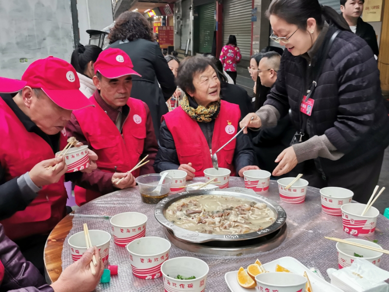 九龙融媒讯(记者 范坤民)12月17日,杨家坪街道政协委员工作站联合毛铁委员工作室开展“冬至暖民心・委员在行动”慰问活动,为辖区环卫工人、劳动模范等一线劳动者送上热腾腾的羊肉汤和饺子,以实际行动践行以人民为中心的发展思想,让冬日暖意直抵人心。杨家坪街道政协委员工作站、毛铁委员工作室、爱心人士等60余人共同参与,区政协副主席陈旭川出席活动。