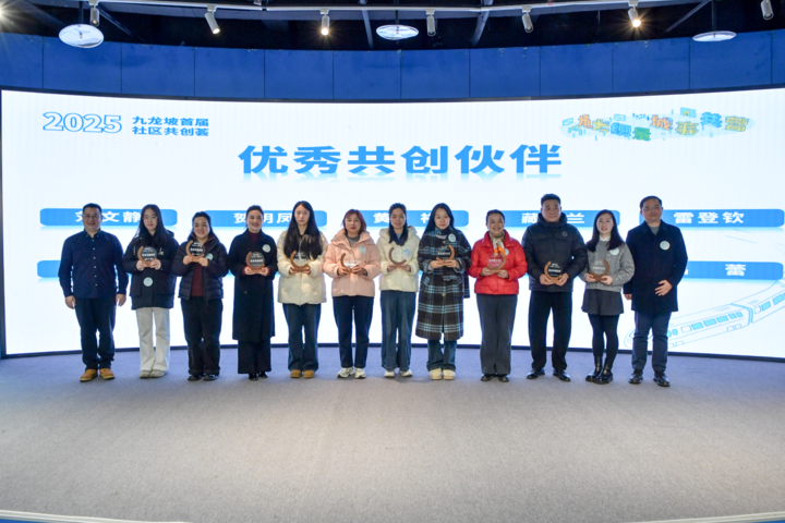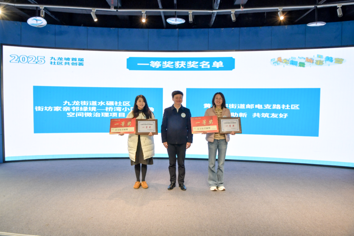最受瞩目的颁奖仪式环节,现场揭晓了“优秀共创伙伴”及25个入围项目的获奖名单。经过实地考察和集中汇报评审,从创新性、可持续性、社会效益等8个维度综合评定,最终评选出一等奖2名、二等奖4名、三等奖6名、优秀奖13名。其中,九龙街道的街坊家亲邻绿境——桥湾小区边角空间微项目、黄桷坪街道的暖心助新·共筑友好获得一等奖。区委社会工作部将根据评选结果匹配相应激励资金,保障项目可持续发展。同时,刘文静、贺明凤等10位来自社区一线的志愿者、社区工作者被授予“优秀共创伙伴”称号,他们用默默付出成为社区治理中最活跃的“细胞”。