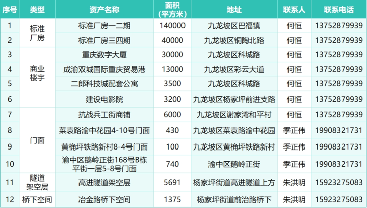 本次发布会以“资源盘活・价值共生”为核心导向,延续“共享机遇・共创未来”的合作主题,既是国有资产潜力的集中展示,更是政企协同、互利共赢的重要桥梁。活动现场集中发布了12处优质运营场景,涵盖标准厂房、商业楼宇、临街门面、隧道架空层、桥下空间等多种类型,其中包括重庆数字大厦、成渝双城国际重庆贸易港、抗战兵工街商铺等重点资源,旨在通过盘活存量资产,拓展城市功能,为投资者与企业提供多元化合作选择。