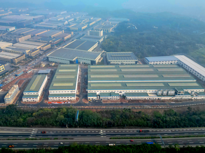 地面上,连片的施工区域里,工程车辆碾过红褐色的泥土,留下深浅不一的辙印;工人们穿梭在钢筋水泥之间,脚手架与防护网交织成错落的网格,将建筑的骨架层层包裹。不远处,已具雏形的建筑群依偎在葱郁的林木间,玻璃幕墙与钢结构的拼接处,还能看到新鲜的施工痕迹,黄黑相间的安全护栏则为这片忙碌的天地添上醒目的警示色。