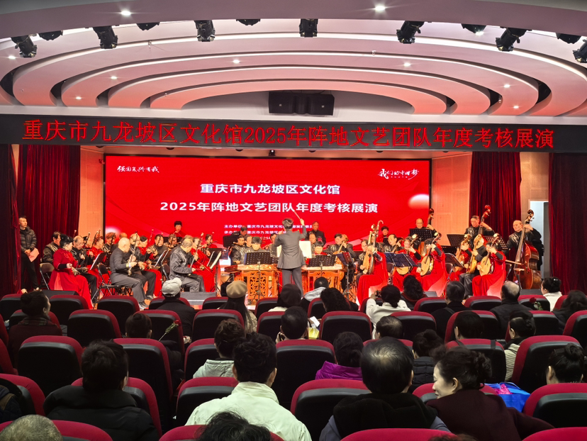 九龙融媒讯(记者 范坤民)12月23日下午,区文化馆2025年阵地文艺团队年度考核展演精彩上演。区文化馆6楼多功能厅内歌声飞扬、乐韵悠长,阳光艺术团、巴人乐团等15支阵地团队轮番登台,为现场观众献上一场精彩的视听盛宴。