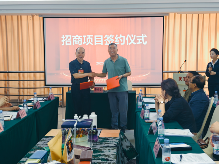 区人大代表田丰(左)助推招商项目成功签约。区人大常委会供图
