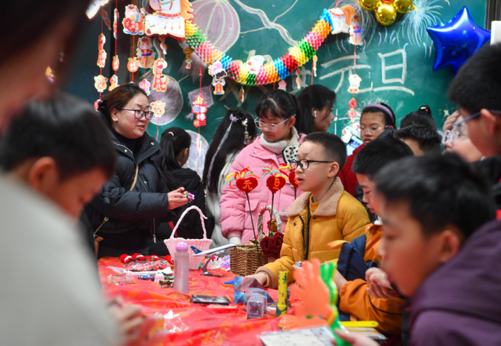 热闹的校级活动结束后,各班开启了温馨有趣的分班庆祝活动。唱歌、跳舞、朗诵、小品、乐器演奏……孩子们纷纷走上舞台,展示自己的特长。师生们共同精心布置教室,营造节日氛围,在欢声笑语中分享喜悦、共话新年,每一间教室都充满了浓浓的温情与欢乐,为孩子们搭建了一个展现自我、收获自信的舞台。