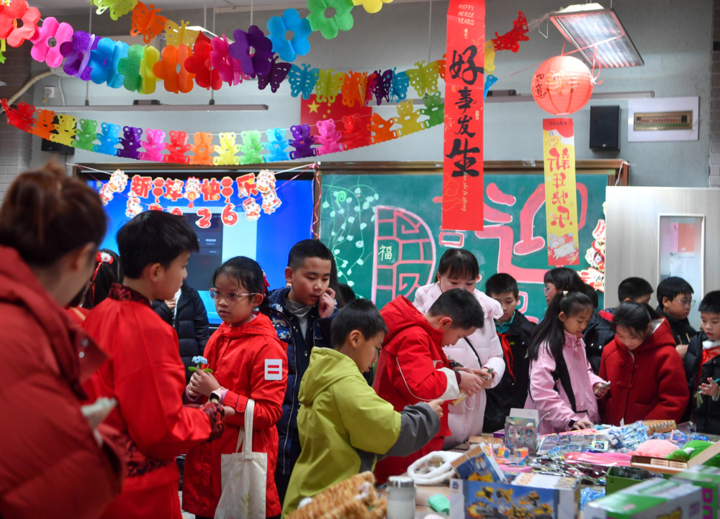 作为本次活动的亮点环节,非遗展示与妙趣集市让孩子们沉浸式体验了中华传统文化的独特魅力。学校特别邀请非遗民间传承人到校,精心设置了面塑、糖画、棕编、葫芦烙画四大非遗项目体验区。孩子们手持幸运体验券,有序排队参与活动,在传承人的耐心指导下,亲手制作出形态各异的面塑玩偶、晶莹剔透的糖画、精巧别致的棕编饰品、独具特色的葫芦烙画,不仅收获了亲手制作的奖品,更近距离感受了非遗文化的博大精深。