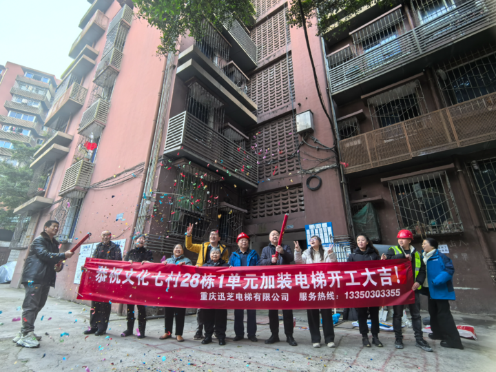 “哒哒哒……”1月9日上午9时,谢家湾街道赵家山社区文化七村28栋1单元电梯加装工程准时破土动工。