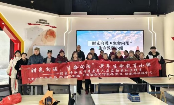 九龙融媒讯(记者 范坤民)近日,由区民政局与杨家坪街道联合指导,和美社工承办的“时光向暖·生命向阳”老年生命教育小组活动顺利收官。活动自2025年12月17日启动至2026年1月9日结束,以四节主题递进的系列活动,为16名参与老年人搭建了认知生命、探寻价值的交流平台,有效回应了老年群体的精神需求。