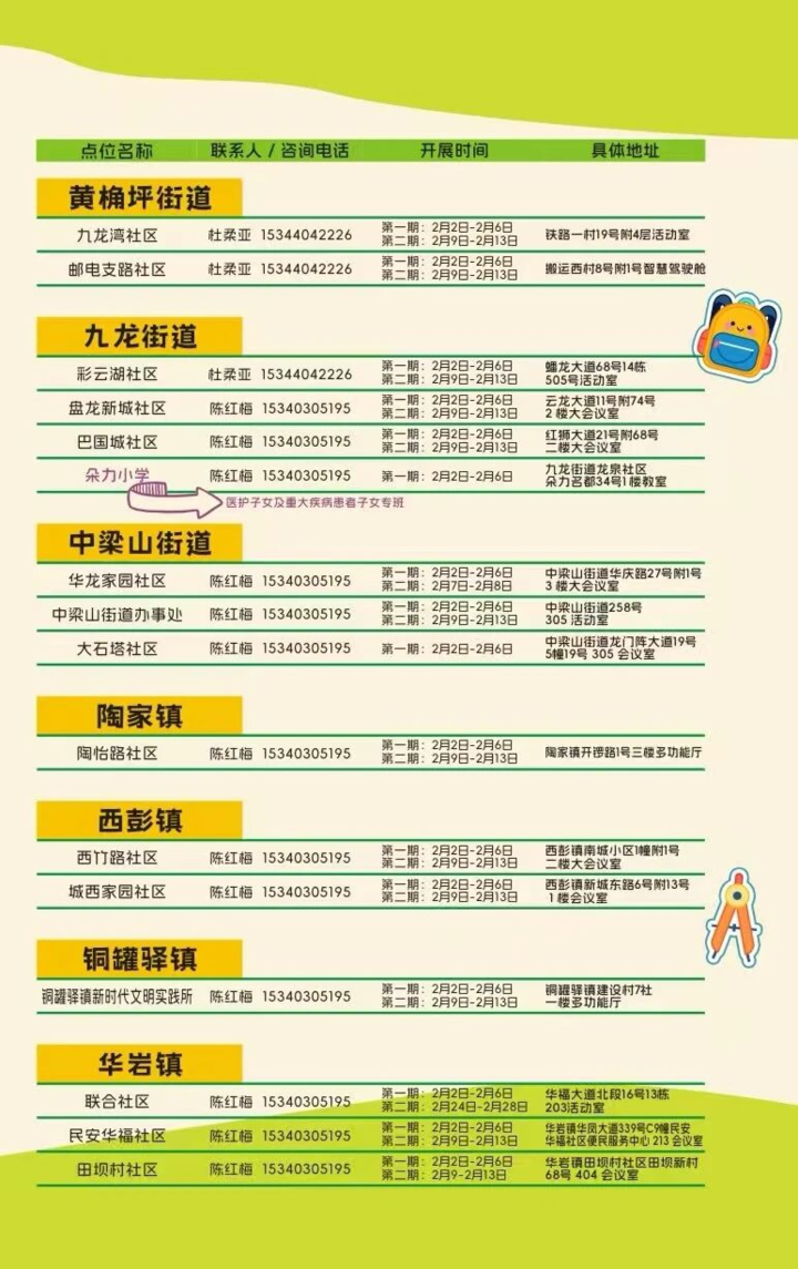 本次寒假公益托管实现全区13个镇街全覆盖,共设立36个托管点位、开设65期托管班次,并特别开设新就业群体子女专班及医护子女和重大疾病患者子女专班,推动服务覆盖与服务效能双提升,托稳九龙少年多彩假期!