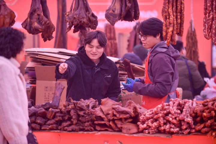 “早就听说城口老腊肉有名,今天特意带家人来逛逛,现场试吃了一块,咸香入味、肥而不腻,立马买了3斤回家过年吃。”市民王女士提着刚选购的腊肉,脸上满是笑容。商户们同样忙得不亦乐乎,“开幕式一上午就卖出了50多斤腊肉,预计这几天销量还会持续上涨。”重庆市城口县赵孝春野生食品开发有限公司工作人员介绍。