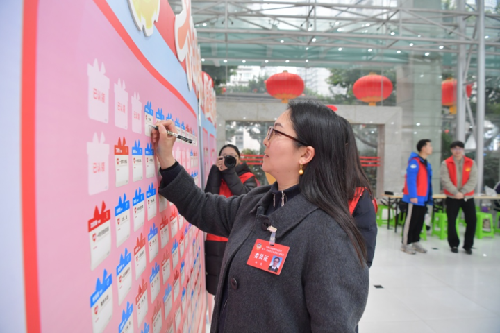 九龙融媒讯(记者 范坤民 曹鸣鸥 施越)“一件衣服”“一套学习用品”“大米、油”……1月19日,在区政协十一届七次会议报到现场,一面红心墙吸引了委员们的注意,上面贴满了密密麻麻的新年心愿。