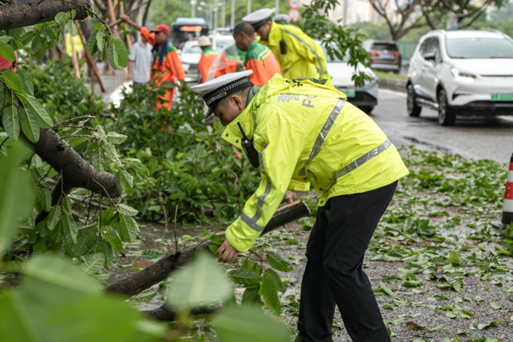 暴雨突袭山城,公安民警冲在一线排险保畅。