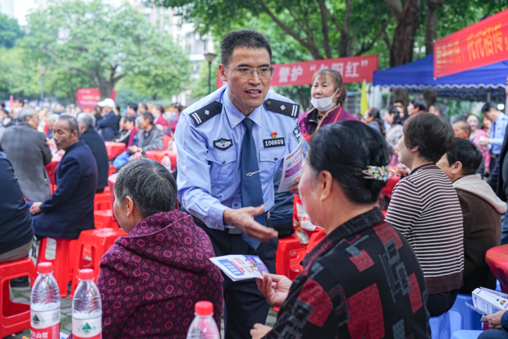 重阳“坝坝席”上,“九警防诈亲友团”面对面向老人讲授反诈知识。