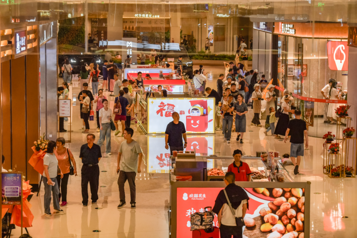 重庆万象城消费场景火热,市民来来往往,逛街购物。