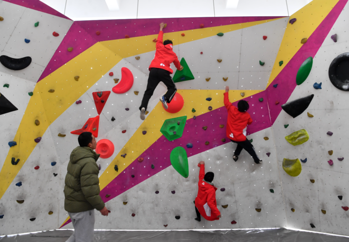 学生在攀岩教室进行练习。