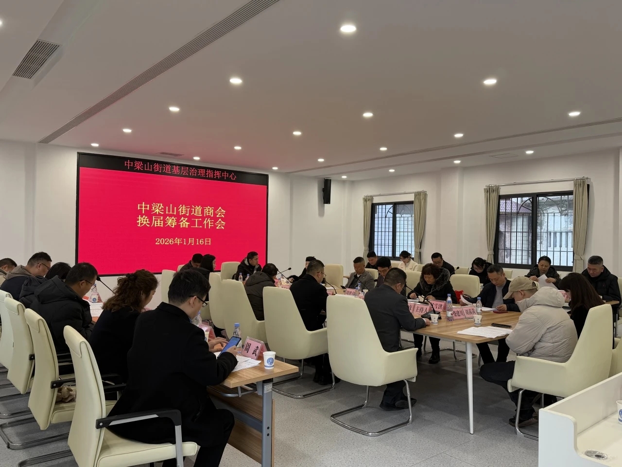 九龙融媒讯(记者 冉冉 摄影报道)1月16日,中梁山街道商会换届筹备工作会在中梁山街道基层治理中心召开。商会理事会成员、监事会成员及换届工作领导小组成员参加会议,共同商议换届大计,谋划未来发展。区工商联、中梁山街道相关负责人参会。本次会议核心任务是系统审议并通过换届大会所需的一系列文件与议案。