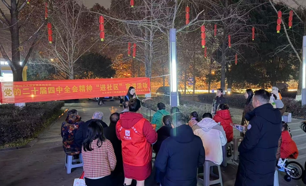 九龙融媒讯(记者 冉冉 摄影报道)1月14日晚,二郎街道石杨二社区新时代文明实践站开展了党的二十届四中全会精神“进社区”宣讲活动。活动通过“理论+实践”模式,将政策解读、安全教育与文明倡导融为一体,既推动党的创新理论“飞入寻常百姓家”,又提升了居民的反诈能力和文明素养。