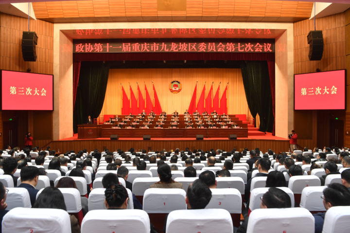 1月22日下午,政协第十一届重庆市九龙坡区委员会第七次会议在庄严的国歌声中闭幕。