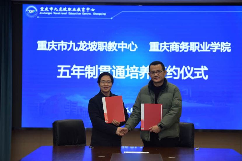 九龙融媒讯(记者 廖婉廷)1月13日下午,重庆商务职业学院党委委员、副校长贾小波一行,来到九龙坡职业教育中心,就中西面点、数字媒体等专业五年制贯通培养事宜开展调研交流,并共同举行签约仪式。