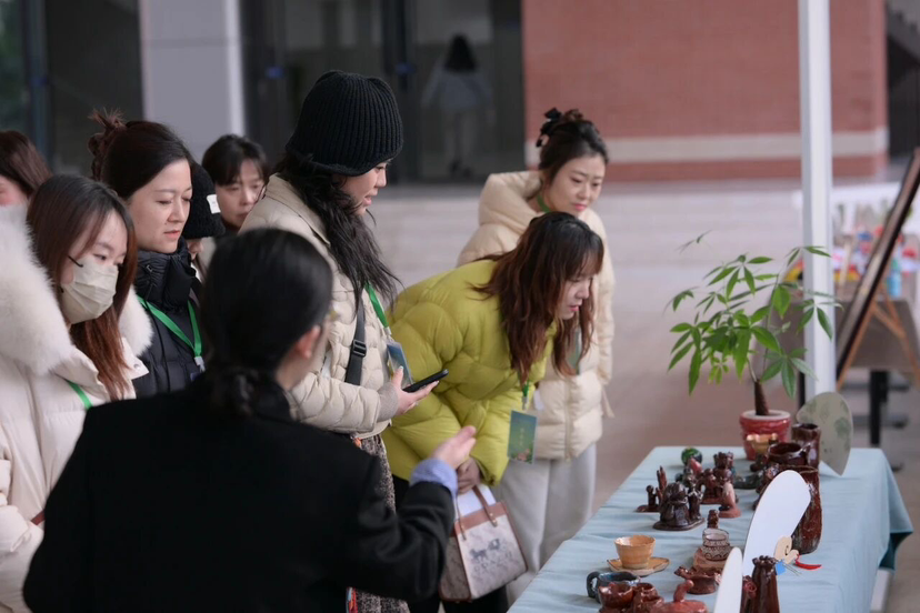 当日清晨,迎着晨光,西安教育团队首先走进石新路小学的学生社团作品展区。展区内,拙朴的陶艺作品与绚烂的彩绘作品相得益彰,每一件作品都生动展现了学校“五育融合”的教育实践成果,让西安同仁直观感受到石新路小学在学生综合素质培养上的用心与成效。
