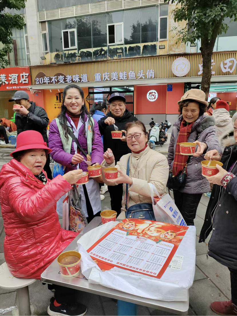 九龙融媒讯(记者 廖婉廷)岁岁腊八至,浓浓敬老情。1月26日,渝州二社区在前小广场举办“温情腊八节 暖心敬老情”主题活动,以传统民俗为纽带,为辖区100余名居民送上节日关怀,用实际行动弘扬尊老、敬老、爱老、助老的传统美德,营造出温馨和谐的社区氛围。