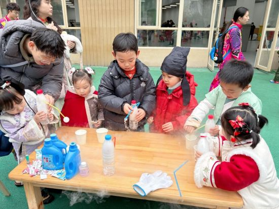 进入盛唐区域,唐装试穿与唐三彩绘制活动为孩子们开启了审美启蒙。宋朝的烧饼制作、点茶体验与活字印刷则展现了古代市井生活与科技智慧。明朝环节通过青花瓷绘制、榫卯拼搭和皮影戏观赏,彰显了传统工艺的魅力。随后,80、90年代以卡拉OK、经典动画等元素唤起跨代记忆,最终以干冰实验、AI影像和机器人互动激发了孩子们对科技未来的无限遐想。