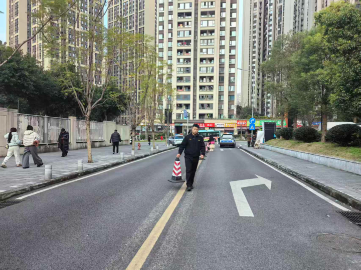 近日,九龙坡区石坪桥街道云星路彩云湖森林小学路段,几名交警正引导车辆驶离新划设的临时停车区,路边的可移动水马路障整齐排列,将原本被违停车辆占据的空间分隔成清晰的行车道和行人通道。学生家长刘女士牵着孩子的手走过宽敞的路面,脸上带着笑意:“以前接孩子要跟违停车‘抢道’,现在路通了,心也顺了。”
