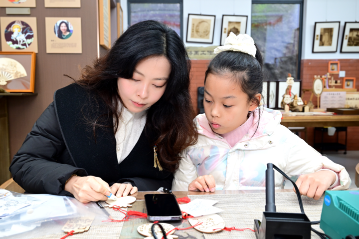 九龙融媒讯(记者 肖雨)2月4日上午,窗明几净的黄桷坪街道小湾社区非遗工作室,7位居民围坐案前,一柄烙铁流转在指尖,一缕青烟升起,一匹骏马轮廓渐渐显现,一个个原本普通的葫芦、扇面、餐盘,在非遗技艺的雕琢下,渐次焕发出古朴雅致的神韵。