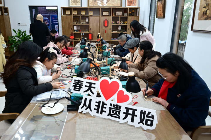 一时间,工作室内掌声不断。高磊看着学员们高涨的热情,满心欣慰:大家有了新的兴趣爱好,掌握一门可以增收的手艺,古老的传统技艺得到了传承,这对我来说就是最有意义的事!