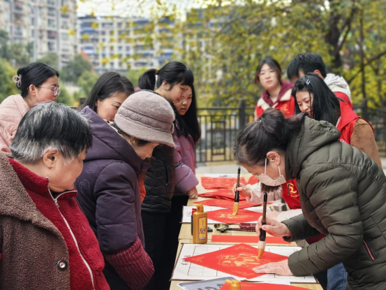 随后,志愿者们分为多个小组,带着亲手书写的福字及春联,兵分多路上门赠送。重点走访慰问社区特殊家庭、独居老人等群体,与他们亲切交谈,详细询问生活状况,叮嘱他们注意身体,同时将寓意吉祥的福字和春联送到他们手中,为他们送上祝福,让特殊群体在寒冬中感受到社区大家庭的温暖与关怀。