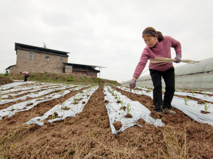 农时不等人,春耕正当时。为抢抓种植黄金期,基地在种植流程上不断优化,形成了一套标准化、规范化的作业体系,严格遵循“育苗→打土施底肥→盖地膜→移栽秧苗→插签固定→覆天膜”的完整流程,采用交叉式作业模式,各环节衔接紧密、高效推进,大幅提升了种植效率。
