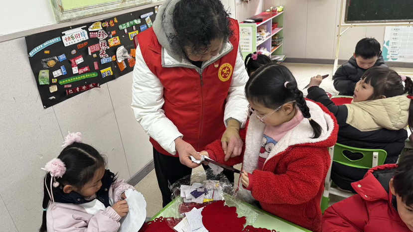 九龙融媒讯(记者 范坤民)近日,杨家坪街道新华一村社区、新华二村社区新时代文明实践服务站走进辖区科艺幼儿园,开展“萌娃迎骏年 巧手制挂件”春节主题活动。活动邀请志愿者、幼儿手工教师,以安全简易的马年装饰挂件制作为载体,为60余名3-6岁幼儿送上沉浸式的年味体验与温暖关怀。