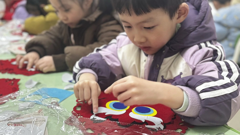 活动最后,小朋友们将亲手制作的马年挂件悬挂在幼儿园走廊、活动室的“新春福墙”上,红、金、橙等喜庆色彩交织,让幼儿园变身年味十足的欢乐天地。