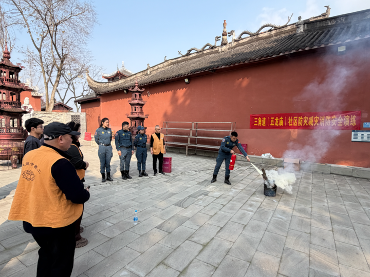 2月6日下午,三角道社区携手九龙坡区蓝天救援队在九龙寺开展以“防患未然·平安护寺”消防应急演练,社区工作者、蓝天救援队志愿者、寺院教职人员等参加。