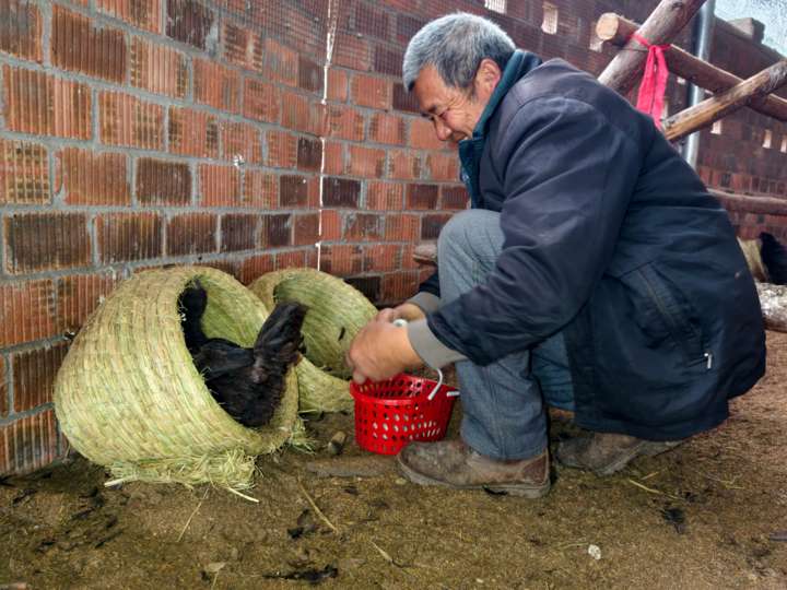 ▲喂食五黑鸡。